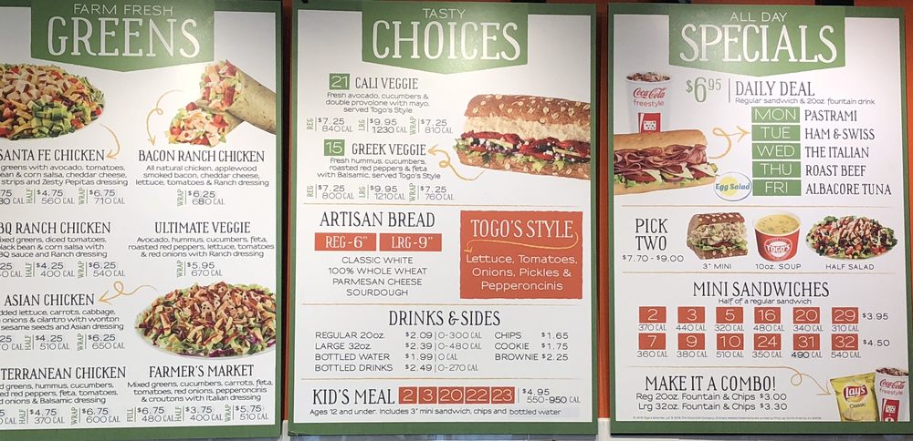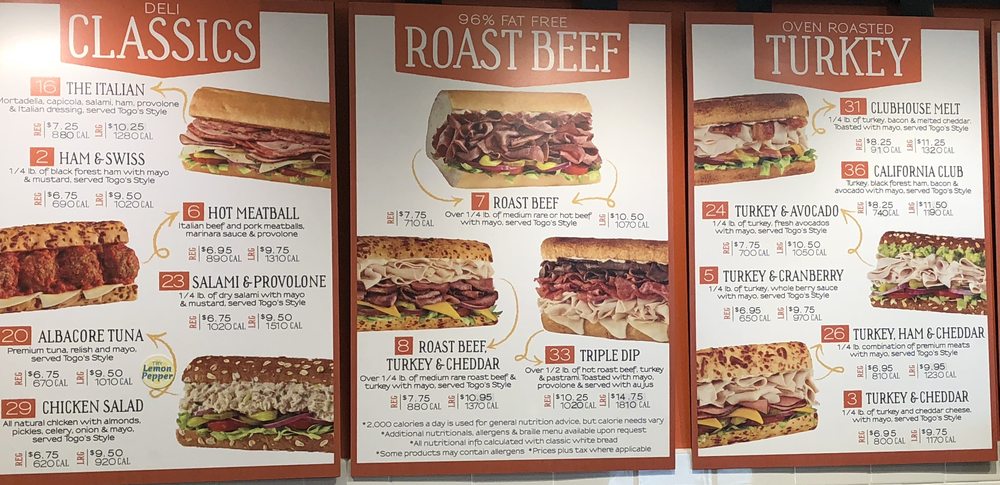 TOGO'S Sandwiches Seaside Menu (Update 2025)